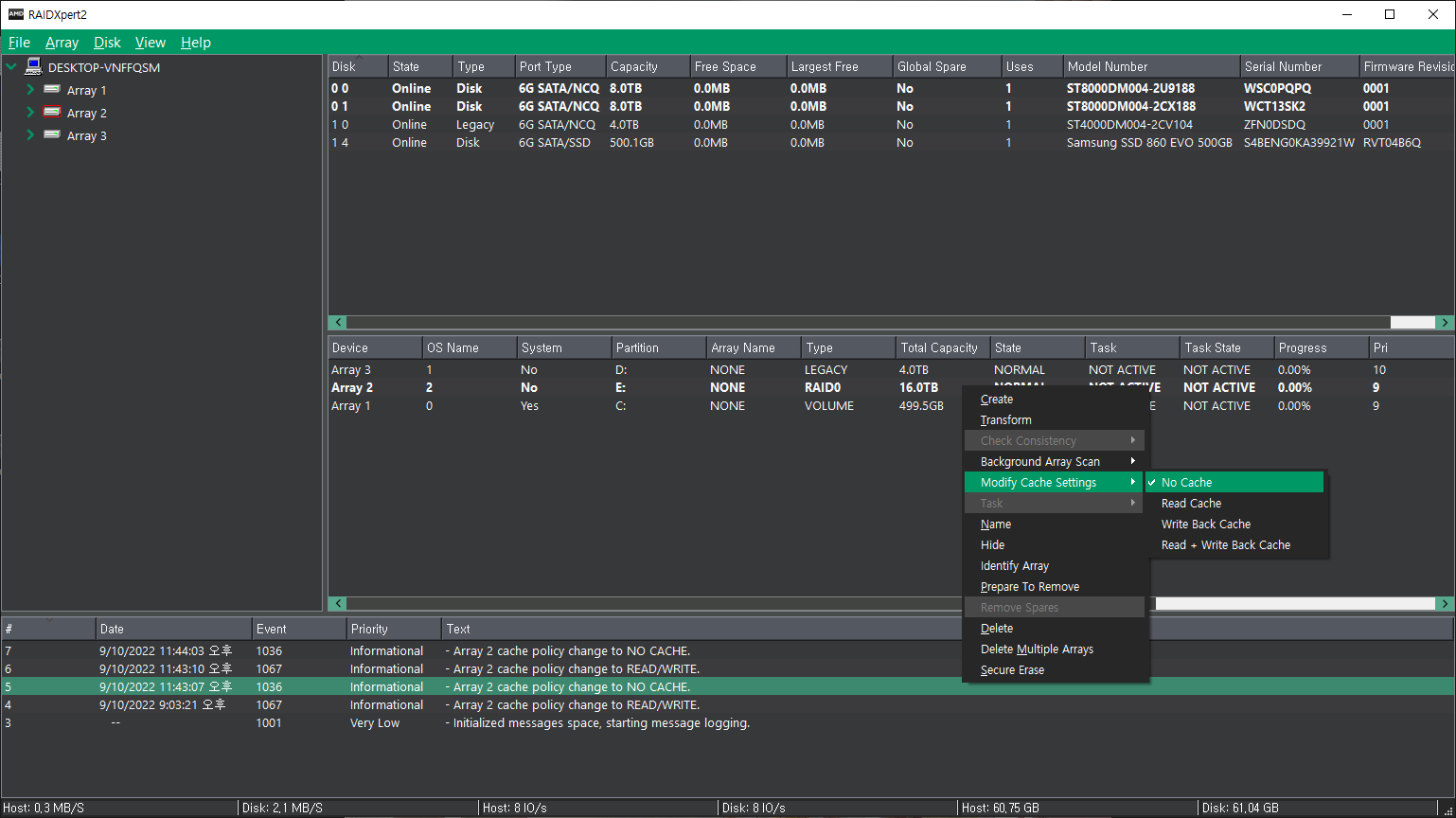 Array 2で8TB HDD2本をRAID 0で組み、データの保存で使っています。
